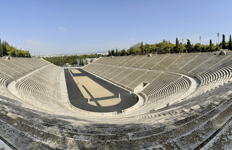 Tilbage til Athen og Panathinaiko Stadion, der ligger præcis hvor antikkens panathenæiske lege fandt sted. Det flotte stadion er opført omkring 330 f.kr., men ombygget i hvid marmor i år 144. Legene blev afholdt til ære for gudinden Athene, og deltagerne konkurrerede i bl.a. atletik, ridning og musik.